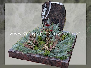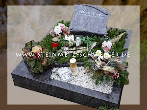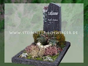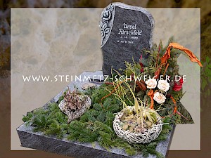 Alle Grabsteine sind meist sofort verfügbar und können kurzfristig mit einer eingearbeiteten Inschrift und Ornament hergestellt und mit einer Einfassung sowie geformten Abdeckplatten auf dem Friedhof versetzt werden.